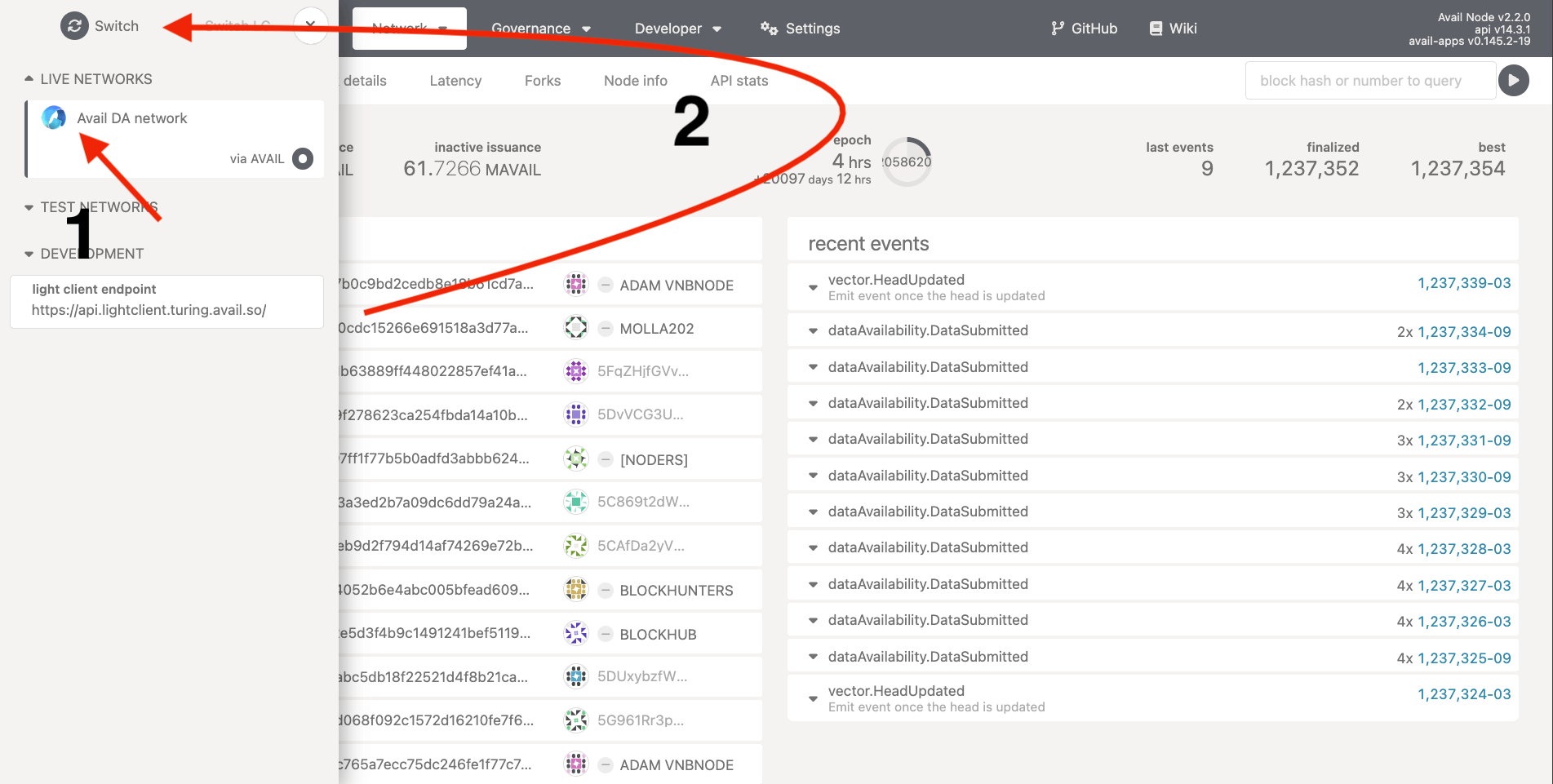 live networks -> Avail DA network, ortest network -> Avail Turing testnet. -