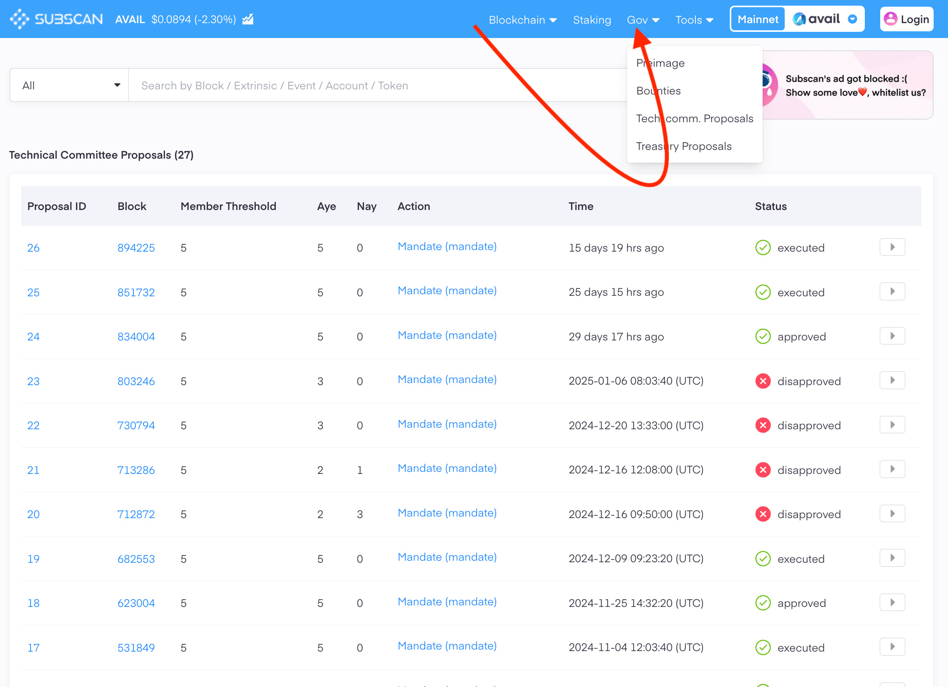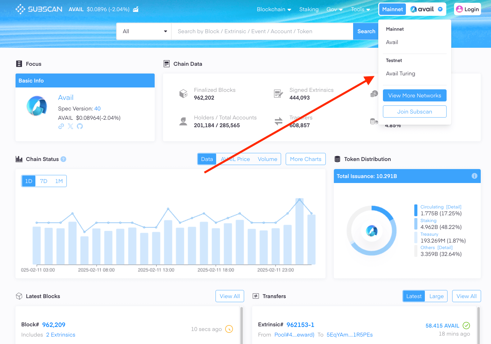 The Avail network has two main explorers that can be used to browse the network: