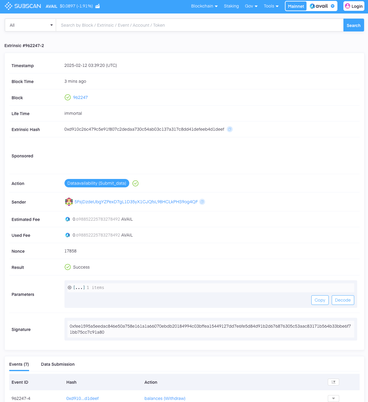 AvailAppsexplorer to query a transaction’s details using just it’s hash directly from a node. -