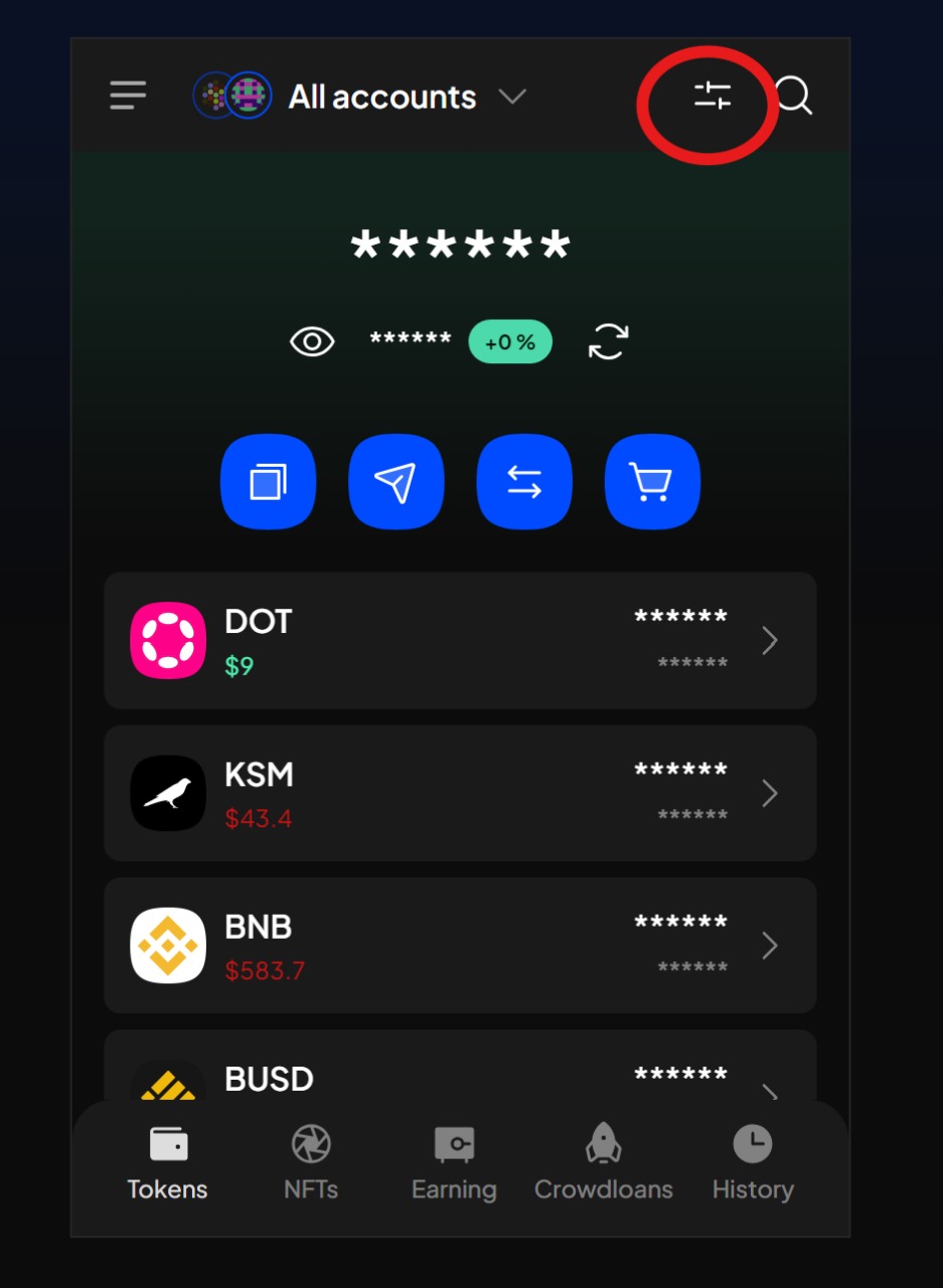 networksmenu from the top-right. You can configure which networks you want displayed by Subwallet from here.